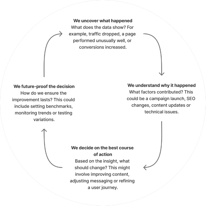 Regularly revisiting your data, asking the right questions and acting on insights ensures your website evolves in line with user needs and business priorities, not just what looks good on a dashboard.